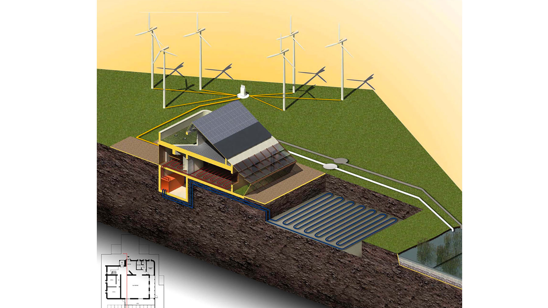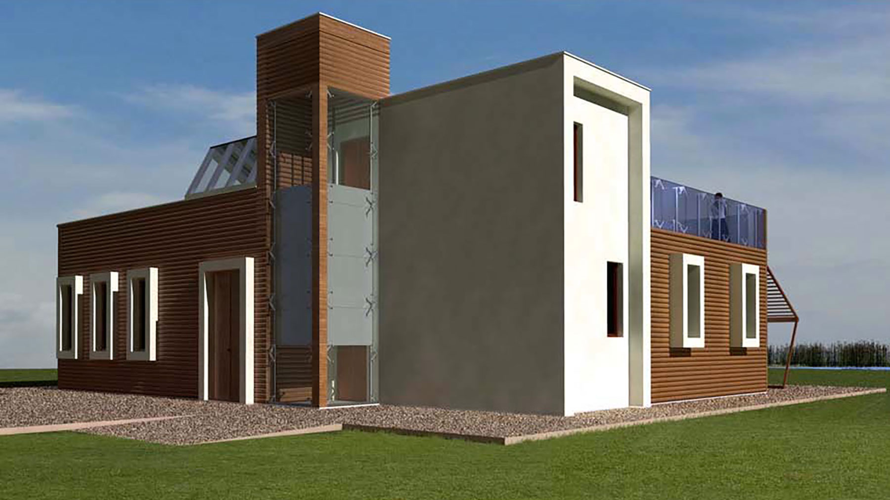 Progettazione di una abitazione green con consumi, per raffrescamento e riscaldamento, completamente autonomi grazie a vari sistemi di produzione energetica: fotovoltaico, solare termico, geotermico, eolico.