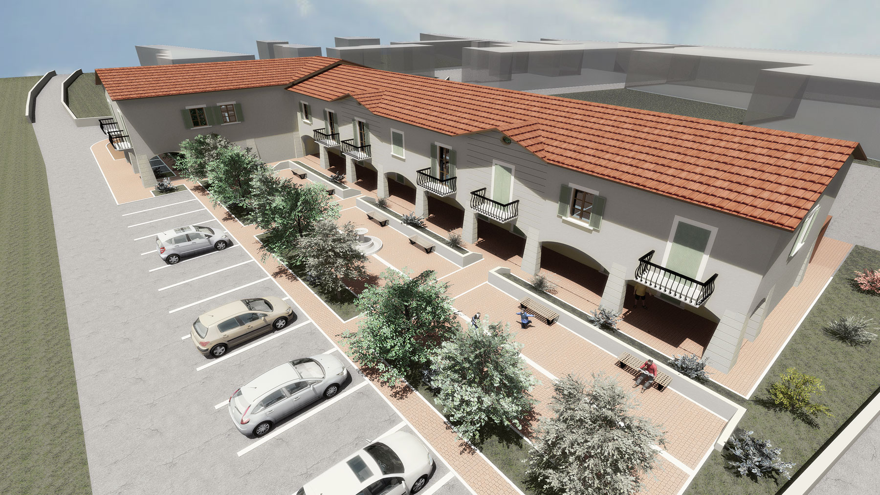 Progettazione preliminare, esecutiva e direzione lavori per la costruzione di un complesso residenziale composto da 11 appartamenti duplex, corredati da loggia e giardino pertinenziali, e tre uffici.